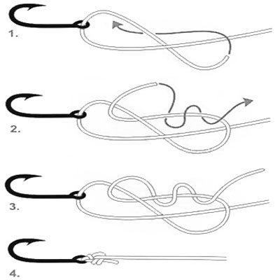 Этот простой узел представляет собой половину змеиного узла. Надёжно держит на всех видах лески. Является одним из наиболее простых способов привязывания рыболовного крючка к леске.